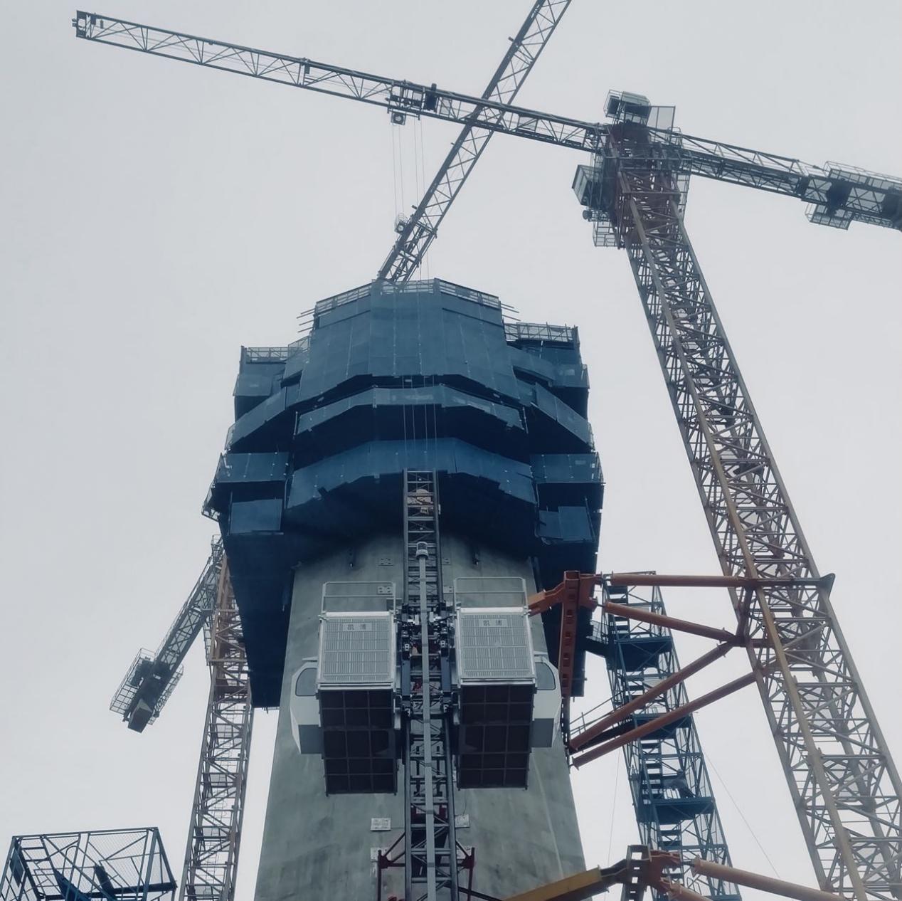近日,廊坊凱博建設(shè)機械科技有限公司生產(chǎn)的斜、直線兩用施工升降機順利投入到廣東佛山“三水三橋”項目。此類型升降機承重架和吊籠經(jīng)過特殊設(shè)計,角度變化范圍為0~15°,在不增加任何部件的情況下,通過簡單操作即可實現(xiàn)斜、直線轉(zhuǎn)換。斜線運行時,吊籠始終保持水平,角度為0時,該機可做為普通直線升降機使用,吊籠尺寸和提升速度可根據(jù)用戶要求定制。該設(shè)備廣泛應(yīng)用于煙囪、橋梁等建筑工程。