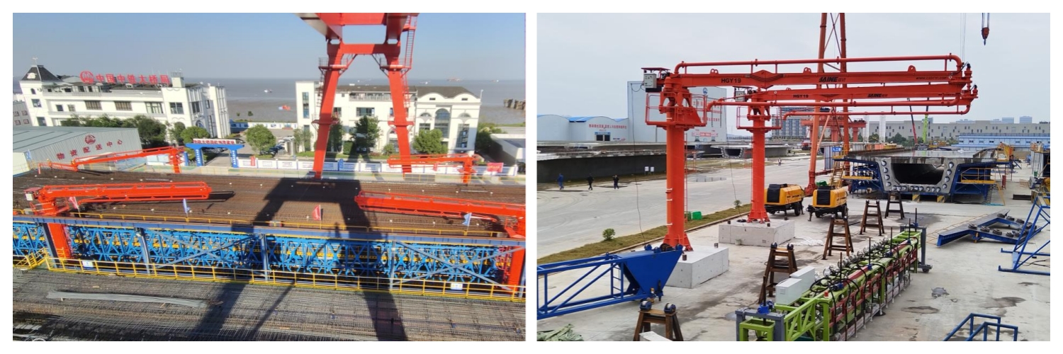 “建研”智能布料機(jī)已廣泛應(yīng)用于橋梁建設(shè)的多個(gè)關(guān)鍵環(huán)節(jié),包括錨碇、承臺(tái)、預(yù)制箱梁、橋面及橋塔等部位的混凝土澆筑。